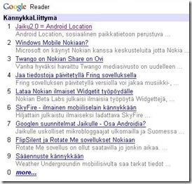 Mielestäni tulos on muita keinoja siistimpi, minkä vuoksi korvasin yläpalkista löytyvän linkin KännykkäLiittymän mobiilisivuun Google Reader versiolla.