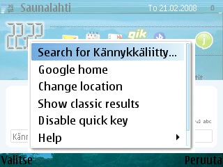 Google julkaisi uuden hakukone -clientin S60 kännyköihin eli esimerkiksi Nokian matkapuhelimille. Sovellus luo aktiiviselle näytölle pikahaun, joka toimii kännykkämalleissa joista löytyy joko ctrl tai "kynä"- näppäin.